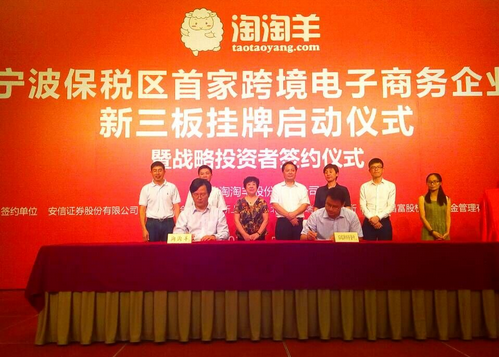 8月29日,宁波淘淘羊股份有限公司宣布与安信证券股份有限公司正式签约,并将在后者辅导推荐下,进入全国中小企业股份转让系统(“新三板”)挂牌,预计将于明年上半年登陆“新三板”,成为宁波首家挂牌新三板的跨境进口电商企业。